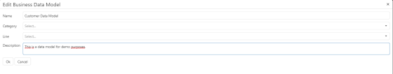 ). The Edit Business Data Model page appears. - Update the details as preferred and click OK.