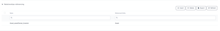 - On the 'assets' entity, the relationship is displayed within the Relationships Referenced section, as this section lists the relationships where the current entity is a child.