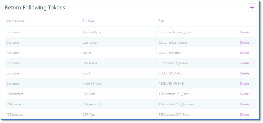 - Next to the Return Following Tokens section title, click the Add icon (+). An empty line is added to the list.