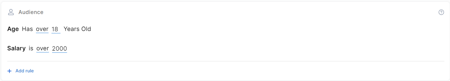 For example, you can divide the target audience into groups based on demographic factors like age and income. This makes your offer only available to people 18 years old or older, and earning at least EUR 2,000 a month.