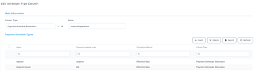 - Column Type: The column type: Payment Schedule Dimension, Fee Dimension or Insurance Dimension.
