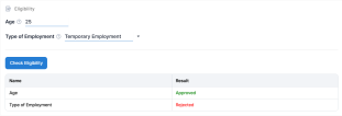 - To check eligibility, enter the eligibility rules inputs in the Eligibility section and click Check Eligibility.