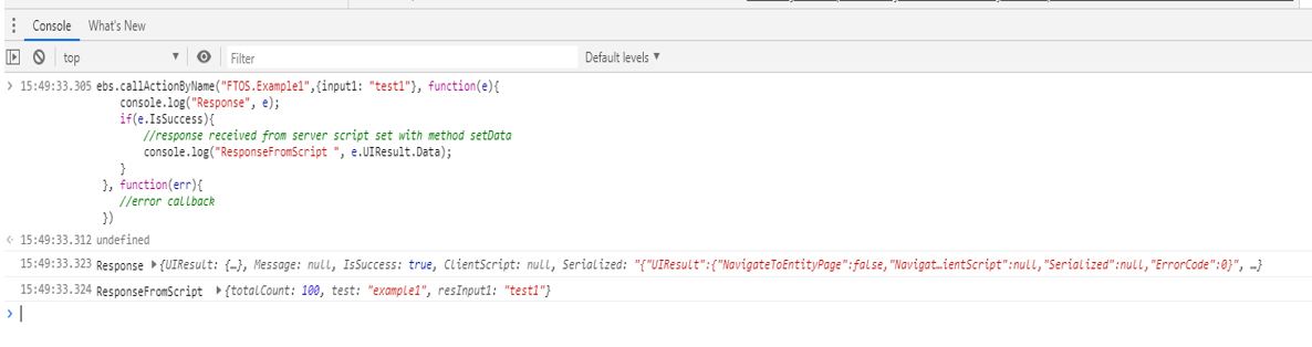 ebs.callActionByName("FTOS.Example1", { input1: "test1" }, function (e) {