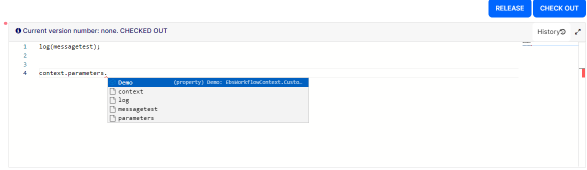 You can define mandatory input parameters that must be passed to the script by the client process and you can enable intelligent code completion in the code editor for the script's input parameters.