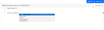 Once defined as above, you can use the context.parameters property in the code editor to access the script's input parameters with intelligent code completion.