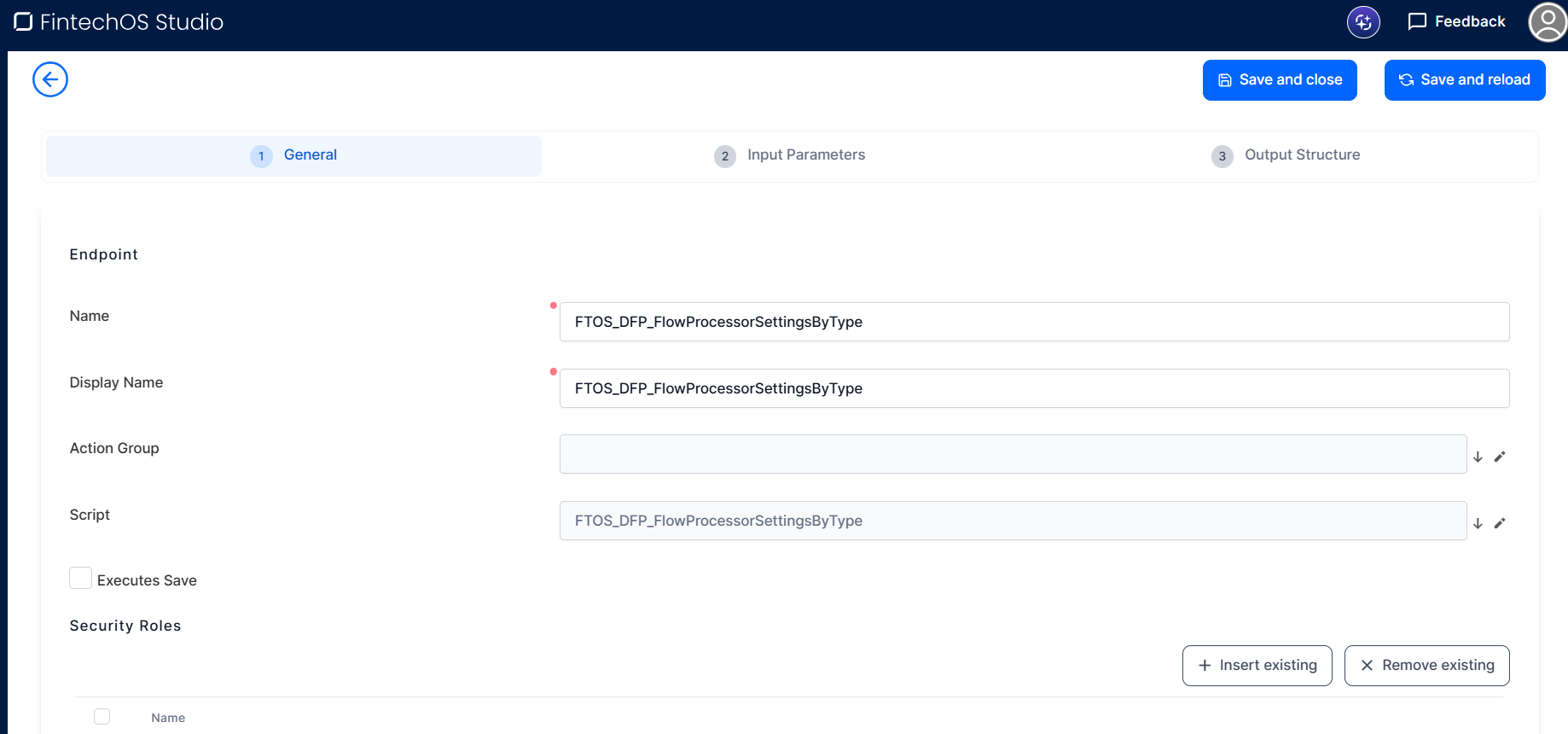 - Click Save and close to save the endpoint or Save and reload to Attach a security role to an endpoint.