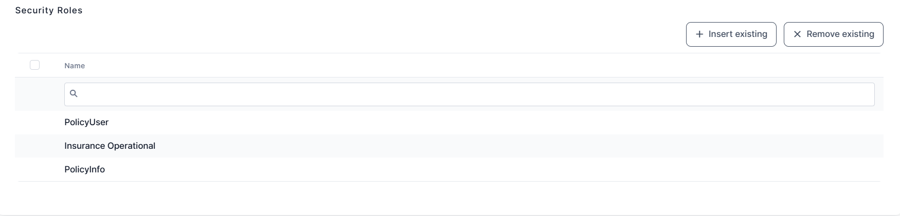 - Open the endpoint, scroll down to the Security Roles section, and click Insert existing.