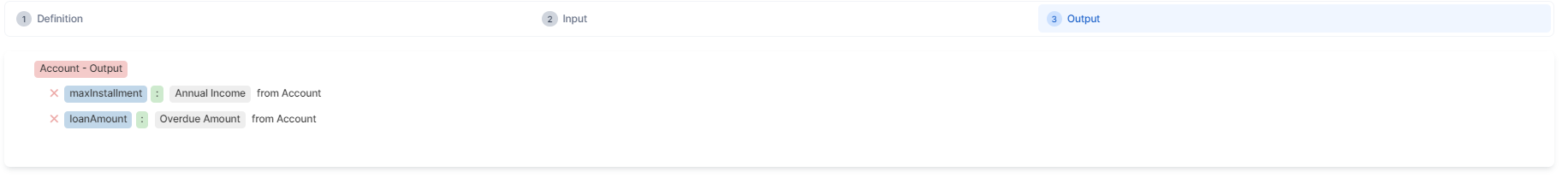 7. Select the Output tab to map the results from the formula to the fields from the account.