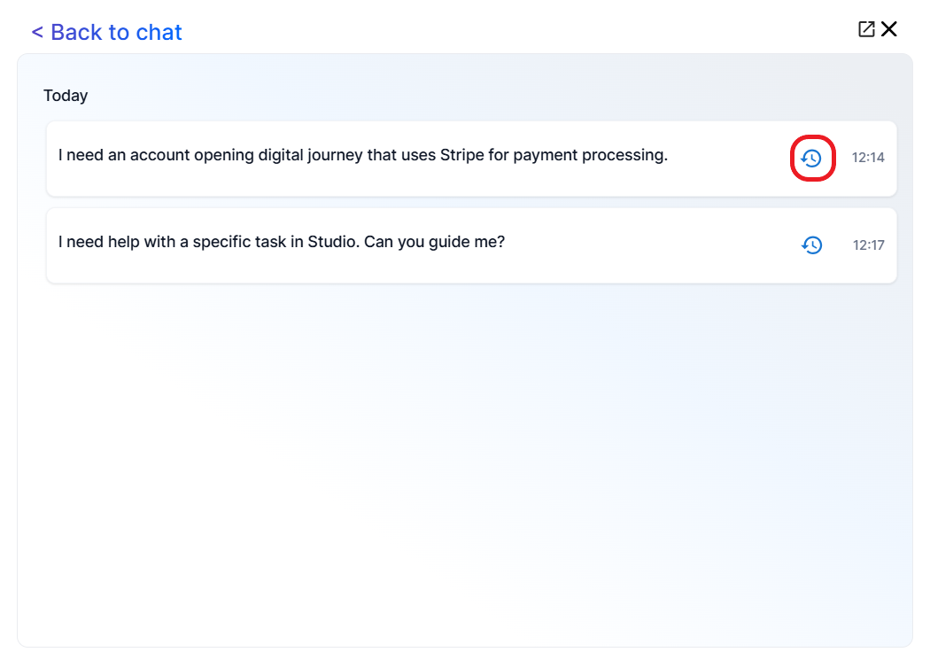 To use Dex, click the assistant button in the top right corner of FintechOS Studio and interact with the assistant through the chat-based interface using natural language. Each session maintains dialogue context across multiple exchanges, allowing for follow-up questions and complex logical flows.