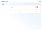 You can access your previous conversations by clicking the History link located at the bottom right corner of the Dex window. This opens a list of all past conversations. To view a specific conversation, click the clock icon next to it.