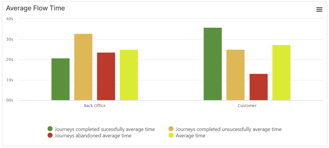 Average Flow Time – shows the average amount of time spent (in minutes) on specific form driven flows that are part of the digital journey.