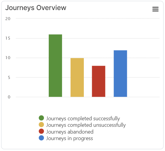 Journeys Overview – shows the total number of the digital journeys and their state and outcome: in progress, abandoned, successfully completed, and unsuccessfully completed.