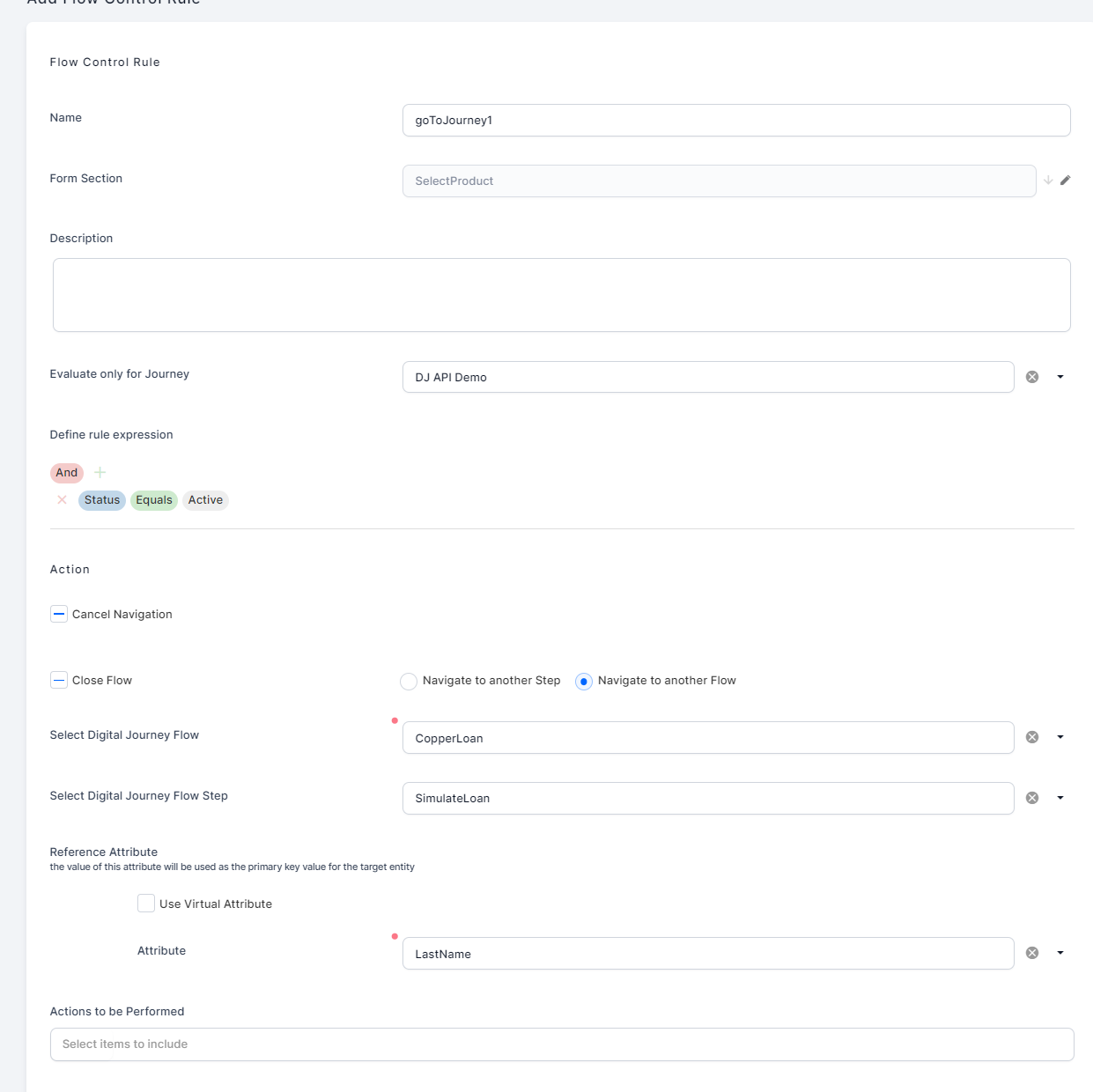 Use the Flow Control Rules section to apply navigation rules and/or form actions only when specific conditions are met: