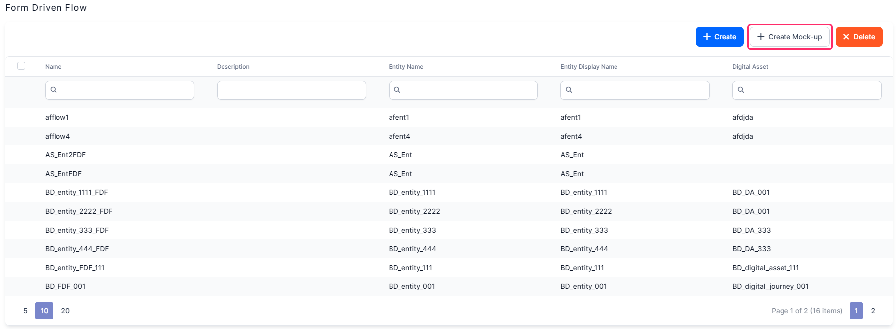 2. In the Form Driven Flow screen, click Create Mock-up.