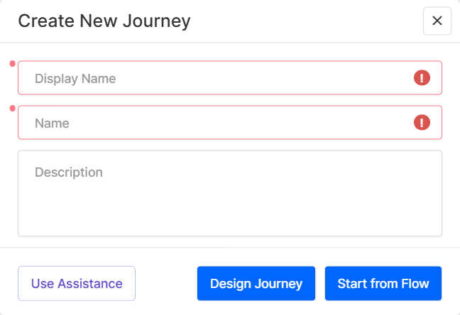 - Use Assistance - Use Dex to pre-populate the journey settings and flow based on an existing journey that matches your requirements: