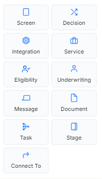 - Simplified Design Components: Easily define all journey touchpoints, including user interface screens, navigation rules, integrations, back-office tasks, underwriting/eligibility checks, document generation, and omnichannel messaging.