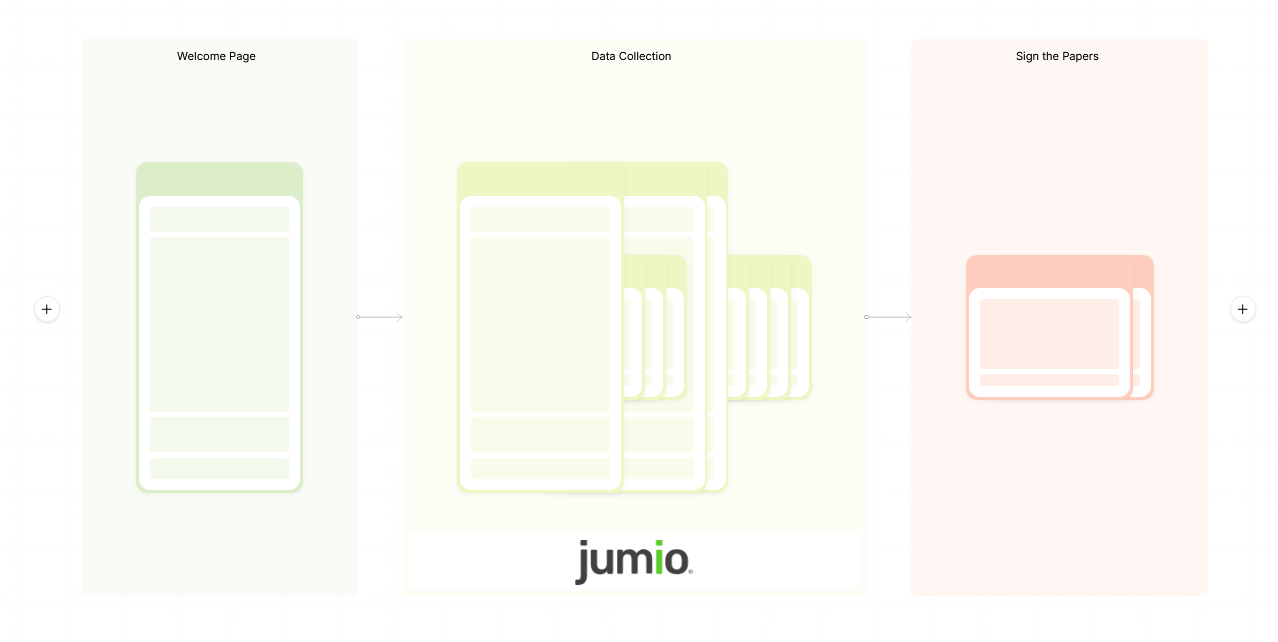 Stages enhance journey clarity by allowing you to group subsequent elements together and assign them a descriptive name. For example, you might group a sequence of screens, decisions, and integration elements used to collect and validate a user's personal data in a "Data Collection" stage.