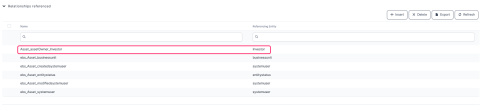 - On the 'assets' entity, the relationship is displayed within the Relationships Referenced section, as this section lists the relationships where the current entity is a child.
