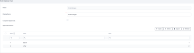 Field Description Name The option set item name which will be used by the system. Display Name The option set name which will be displayed in the user interface. NOTE