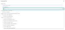 After selecting all the entities from where you want to extract information, for each entity, select the attributes to be included in the fetch. To do so, click the Attribute list button displayed below each entity. The Attributes list page will be displayed. It lists all the attributes existing on that entity. The figure below shows the attributes of the Account entity: