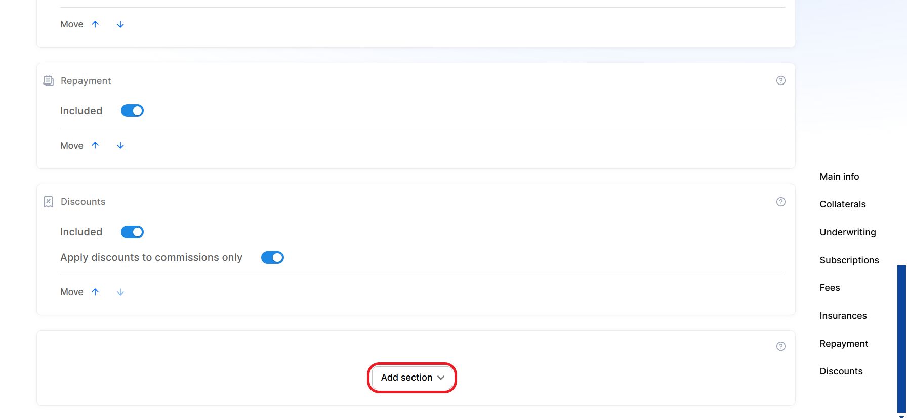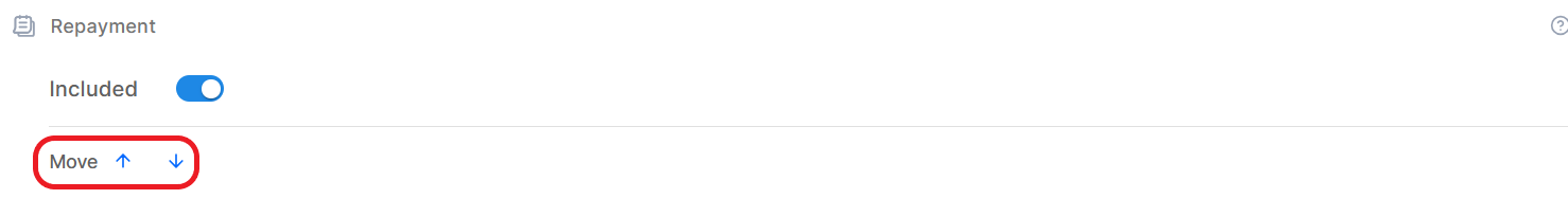 - Includes down payment - Adds a field to configure an up-front partial payment (e.g.: for loan products such as mortgages).