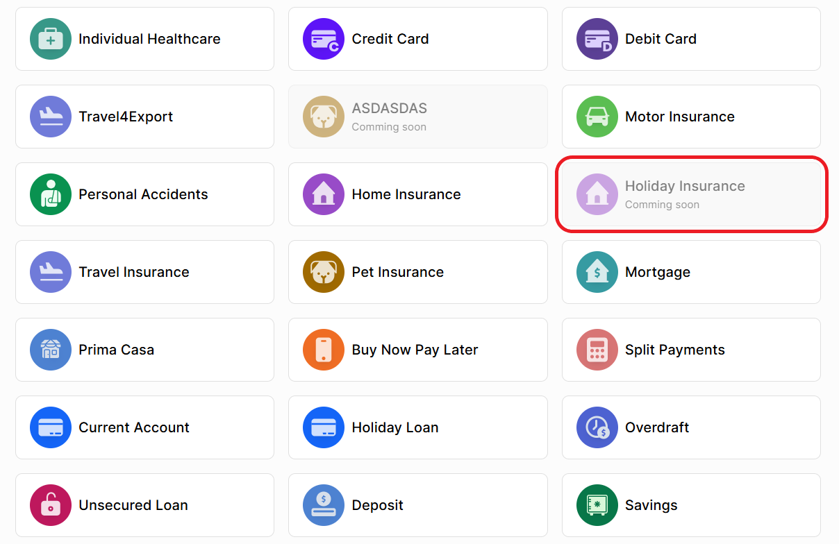 When selecting the template for a new product, draft templates are displayed in the selection window as grayed out, inactive buttons tagged as Coming soon.