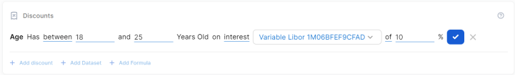 6. In the Discounts section, we've set a 10% discount for Interest, if the applicant's age is between 18 and 25 years old.