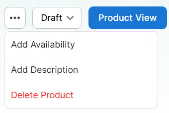 When editing a product in the draft state, the ellipsis menu (...) includes an option to delete the draft.