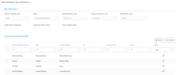 - The Payment Schedule Types section is displayed after saving, showing all the payment schedule types using this column, with the following information: