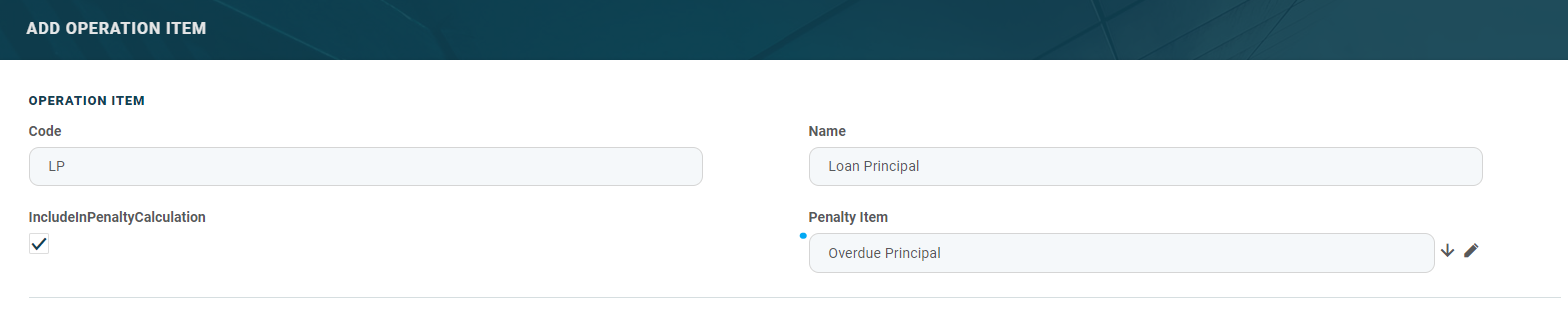 After defining the operation items, they are used by Core Banking in the calculation processes of payment and repayment notifications, due amounts, accounting entries and others.