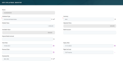 | Available Value | Yes | Numeric | If the collateral is used to cover other loans, Core Banking automatically calculates the remaining value and displays it in this read-only field. |