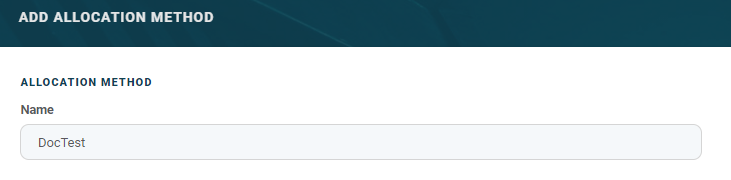 Click the Allocation Method menu item to open the Add Allocation Method page.