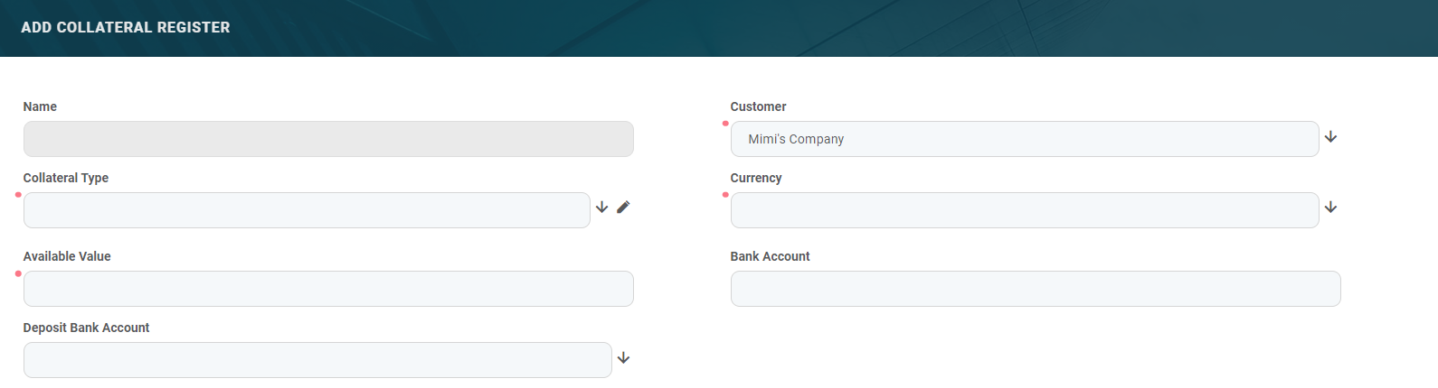 To add a new collateral register record to the customer, follow these steps:
