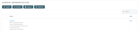 In this section, you can add new representatives, view the existing ones by clicking the desired record from the list, delete records from the list and export the list.