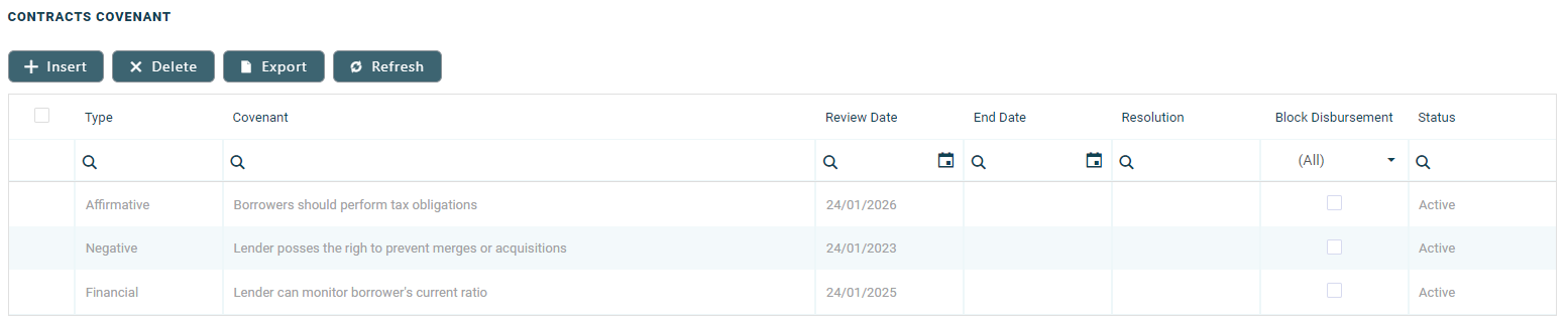 In the application’s interface, collections of items (such as contracts, banking products, accounts, etc.) are often listed in a tabular format as illustrated below: