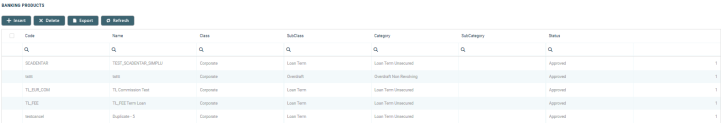 To create a banking product, click the Insert button under the Banking Products section. For more details on how to create banking products, see Managing Banking Products.