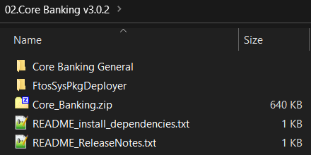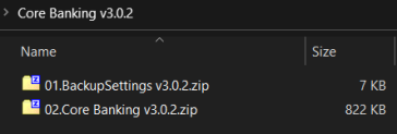 Eachzipfile within the CoreBanking_v3.0.2.zip must be extracted and installed separately, in the given order! -