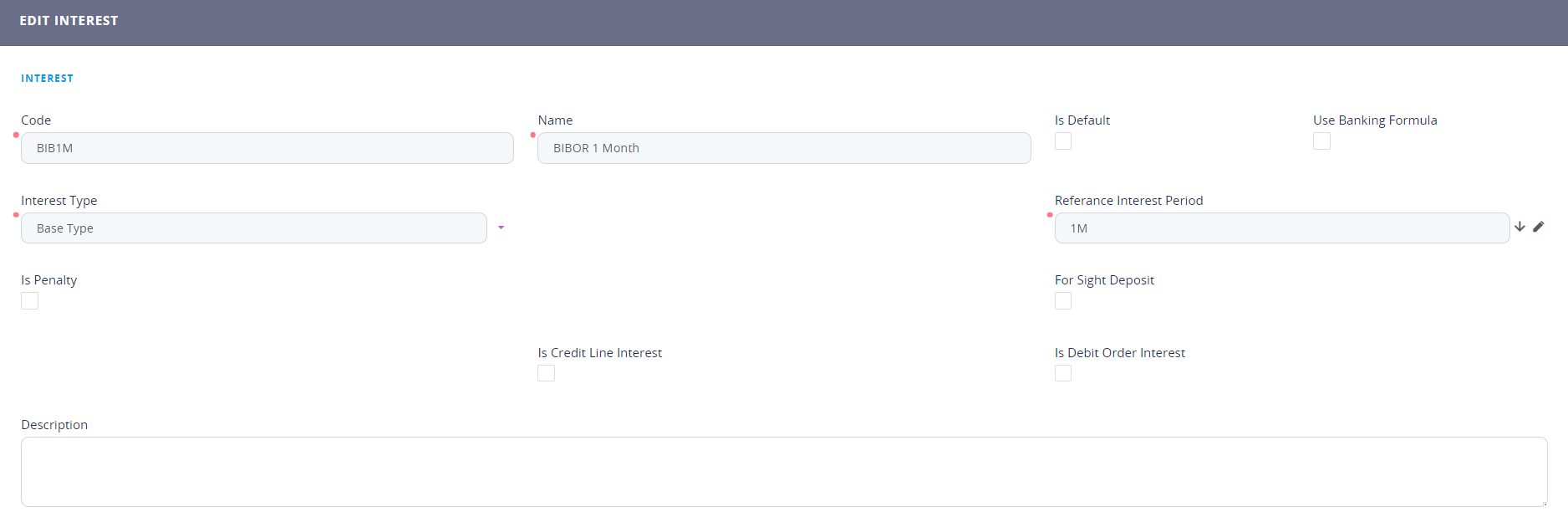 Use Banking Formula No Bool Select the checkbox if the interest is of type Banking Formula.
