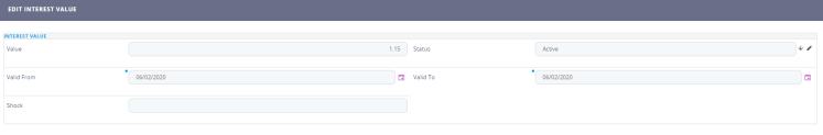 The Interest Value section is available only for Fixed, Base Type, and Variable interest rates . Insert the values (usually the interest rate index to your margin) by filling in the following fields: