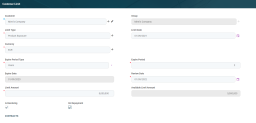 Expire Period Whole number Insert the number for the period, e.g. 4., i.e. 4 months. Expire Date Date This field is automatically completed with the date when the limit expires, as calculated based on the values entered in the previous fields. Review Date Date Select a date when the limit is reviewed. Limit Amount Numeric Select the amount representing the limit for the credit. Available Limit Amount Numeric This field is automatically completed by Core Banking with the remaining amount, e.g. if the total exposure was $5 million, a credit was given for $3 million, $2 million is still available. Is Revolving Boolean If this checkbox is selected, then the limit is a revolving limit, meaning that the Available Amount of the limit is replenished either on each repayment of the principal or on loan contract closure, depending on the On Repaymentfield's value. If the checkbox is not selected, then the limit is not revolving in any circumstances. The default value isTrue.On Repayment Boolean This field can be selected only if Is Revolving = True. If this checkbox is selected, then the Available Amount of the limit is replenished on each repayment of the principal with the repayment value. If the checkbox is not selected for a revolving limit, then the limit amount is replenished on contract closure with the amount of the contract. The default value isTrue.NOTE