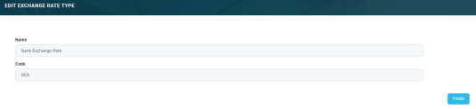 The Exchange Rate Type menu allows users to add exchange rate types where there is a need to differentiate between exchange rates based on currency market or business area. These records are used when creating exchange rates in the Exchange Rate menu.