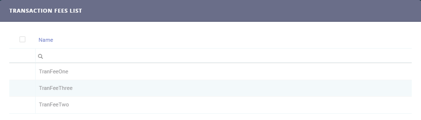 Click Transaction Fee menu item to open the Transaction Fees List page.