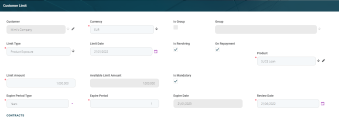 - Click the Insert button on the top right side of the Customer Limits List page. The Customer Limit page is displayed.