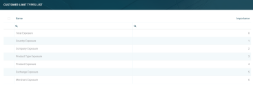 Click Customer Limit Type menu item to open the Customer Limit Types List page.