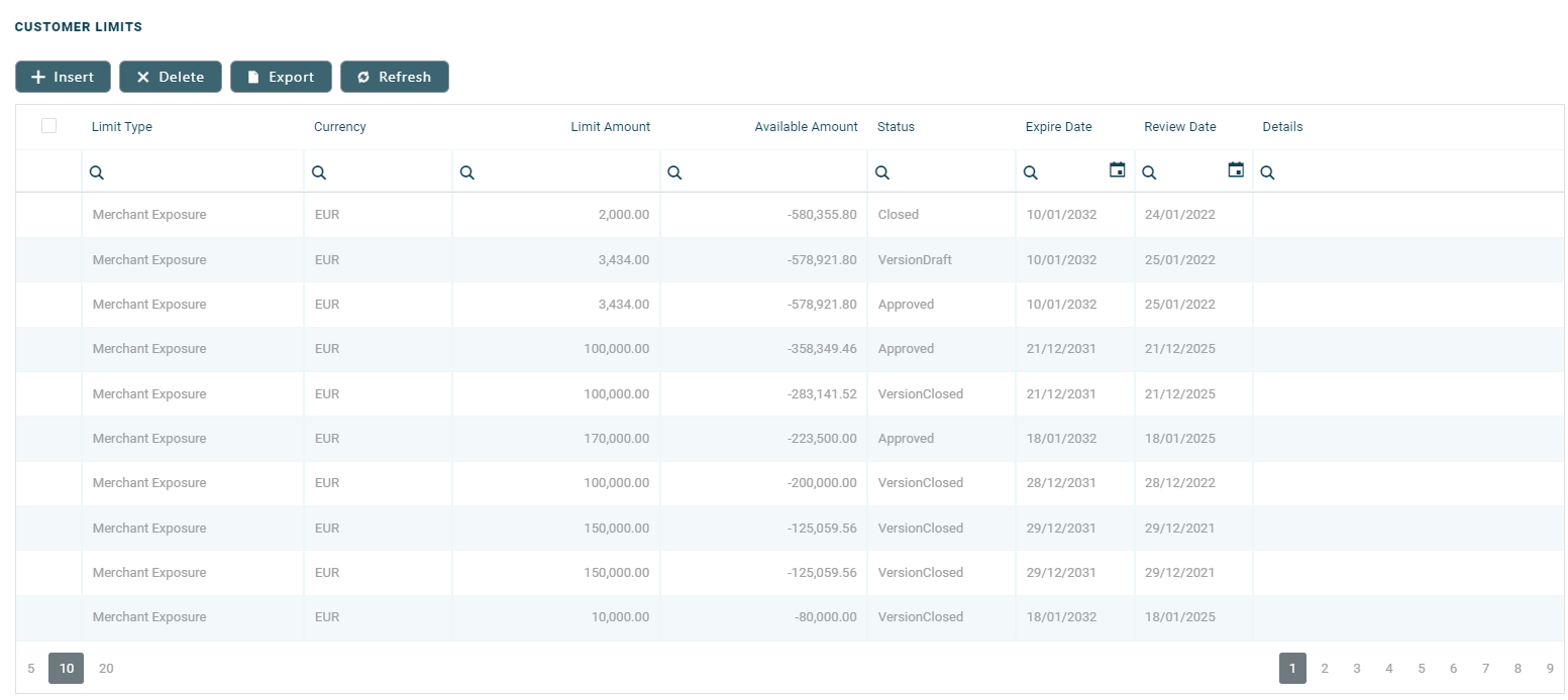 Limit type records are created in the FintechOS Portal, on the Customer Limit Types List page.