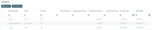 In the Contracts section, the existing contracts affected by this limit are displayed. To export the list, click the Export button.
