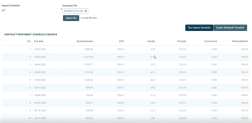 Click the Run Import Schedule button to perform the import of the new custom schedule to the contract. This button can be clicked only if a file was selected in the Schedule File field. The Contract Repayment Schedule Details section now displays data contained in your custom schedule.