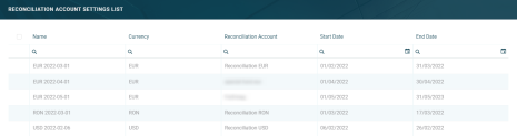 Click the Reconciliation Account Settings menu item to open the Reconciliation Account Settings List page.