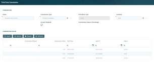The value of a third-party commission used in active contracts cannot be edited. Instead, you can modify the value's validity and add a new value with a future validity period. For details, see the Editing The Value Of A Commission Already In Use section.