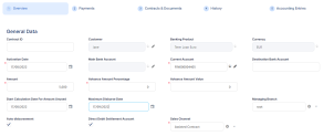 When the contract is activated, the available limit amount is decreased with the (Amount - Advance Amount) value.Auto Disbursement = Trueand cannot be changed for contracts with advance amount >0.